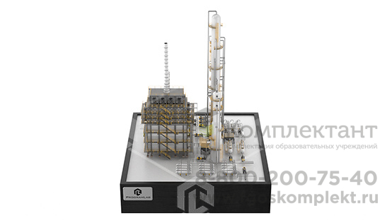 Макет колонны атмосферной перегонки нефти выполнен из профессиональных листовых и легкообрабатываемых материалов с применением технологий FDM и SLA печати, отдельные элементы созданы на ЧПУ станках, позволяет наглядно изучить устройство и элементы колонны атмосферной перегонки нефти, содержит экспликацию оборудования.