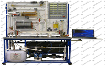 Обеспечивает изучение и исследование процессов теплообмена при движении жидкости в различных системах, измерение параметров жидкости. Стенд выполнен в виде единой рамной конструкции, объединенной с лабораторным столом. Состав: гидравлические баки холодного и горячего контура, два насоса, датчики давления, температуры, расходомеры горячего и холодного контура, плата АЦП, компьютер (ноутбук).
