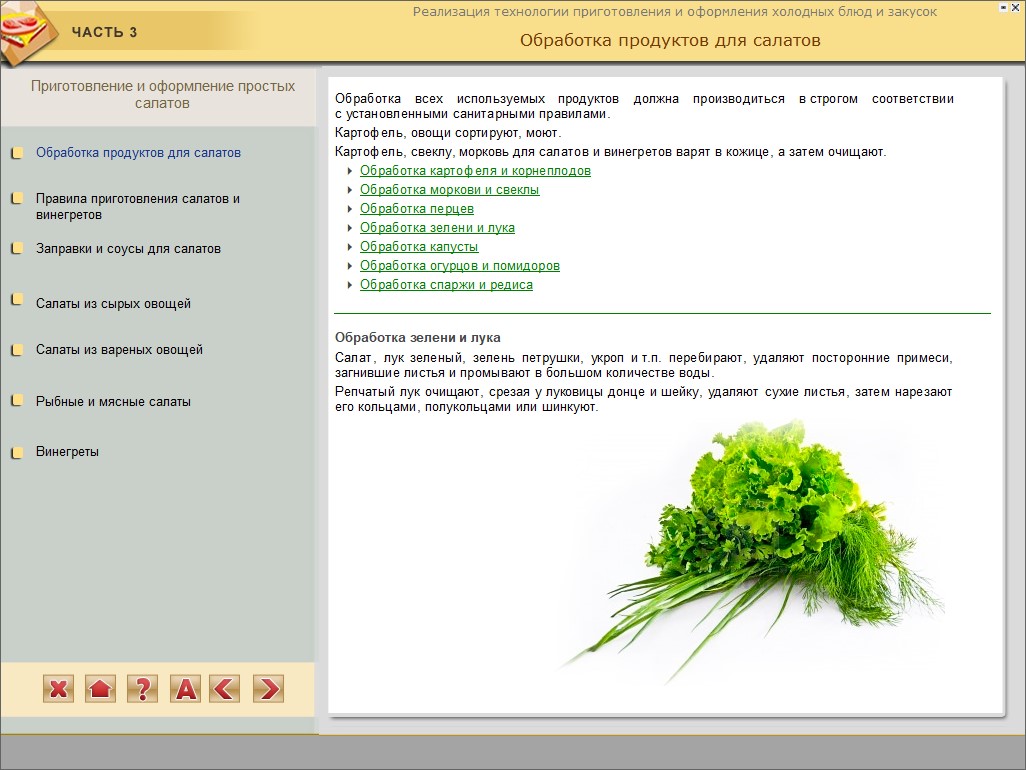 Учебное видео (средняя продолжительность видео – 15 мин, по каждой теме сформирована подборка из нескольких видеофрагментов, которая включает подготовку рабочего места повара, приготовление блюда, демонстрацию блюд данной классификации):