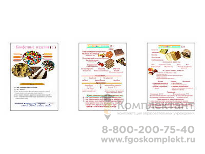 Плакаты ПРОФТЕХ «Конфетные изделия» (3 шт., винил, 70х100) – наглядное пособие для изучения различных видов конфет. Идеально подходит для школ, детских садов и кулинарных курсов.