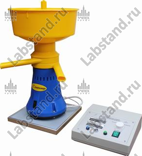 Описание: лабораторный стенд представляет собой действующий молочный сепаратор на металлическом основании с блоком управления. Стенд обеспечивает проведение работ по сепарированию молока, выделению жирной фракции и обезжиренного молока; обеспечивает наглядную демонстрацию процесса сепарирования в зависимости от частоты вращения сепарирующего барабана и времени сепарации. Блок управления стенда обеспечивает возможность регулировки частоты вращения двигателя сепаратора и установки времени сепарации.