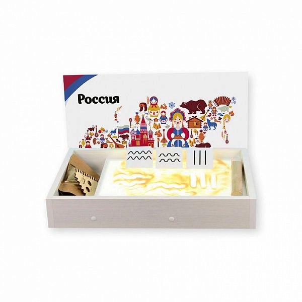 В комплекте: световой планшет, крышка, песок, подсветка, яркий корпус, отсек для инструментов и песка.