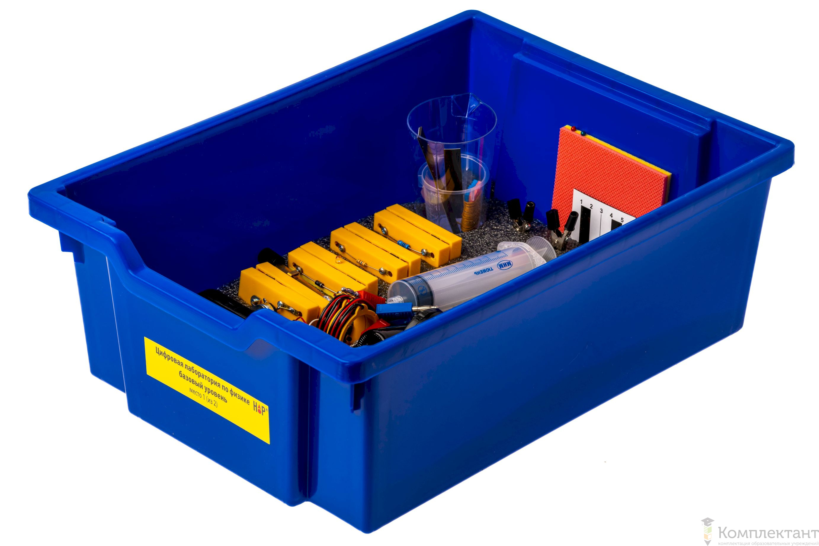 Все оборудование цифровой лаборатории (кроме скамьи лабораторной) укомплектовано в пластиковую систему хранения, который закрывается прозрачной пластиковой крышкой на защелках для обеспечения наблюдения за содержимым. Комплект оборудования и датчики в системе хранения располагаются на ложементе в индивидуальных ячейках.