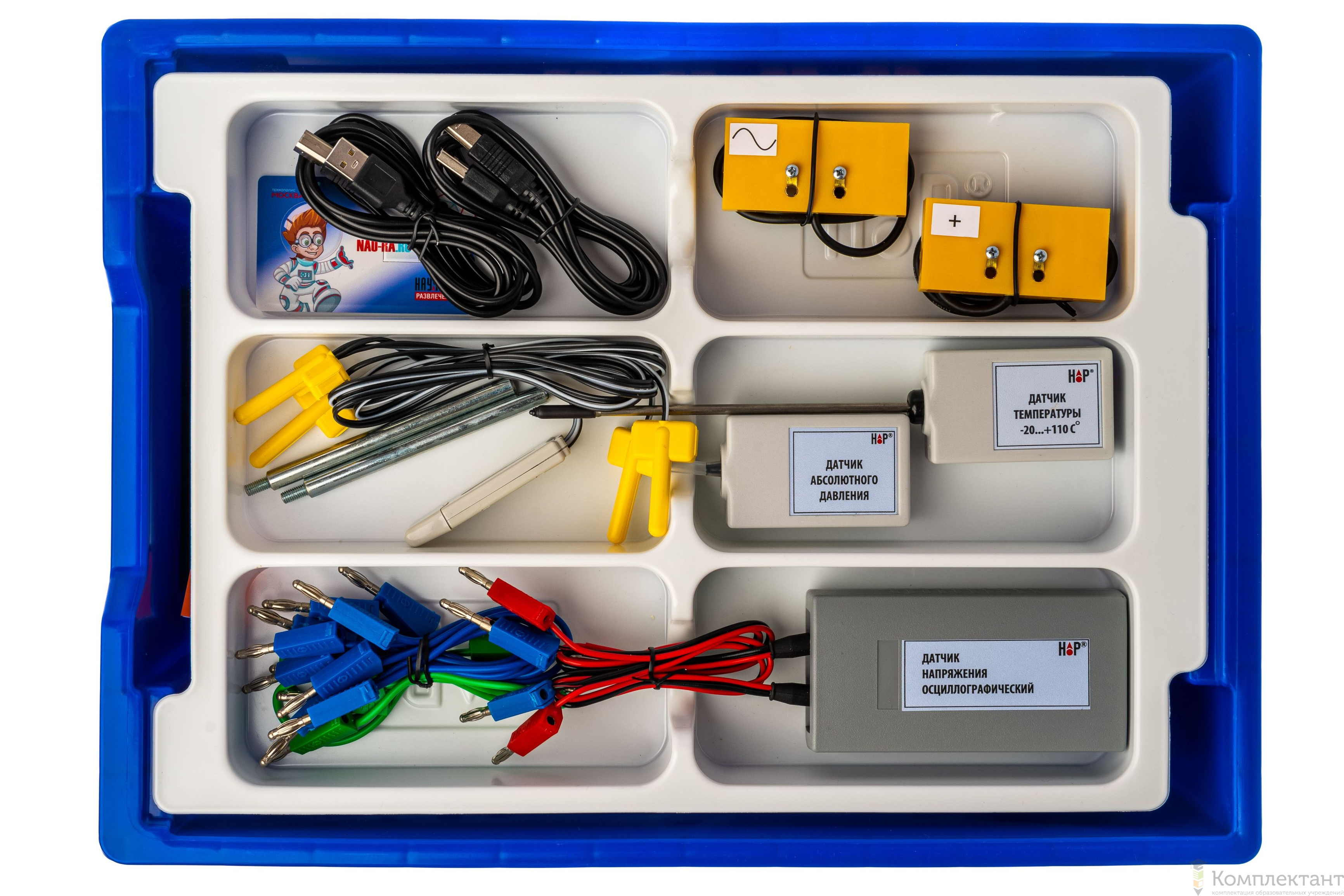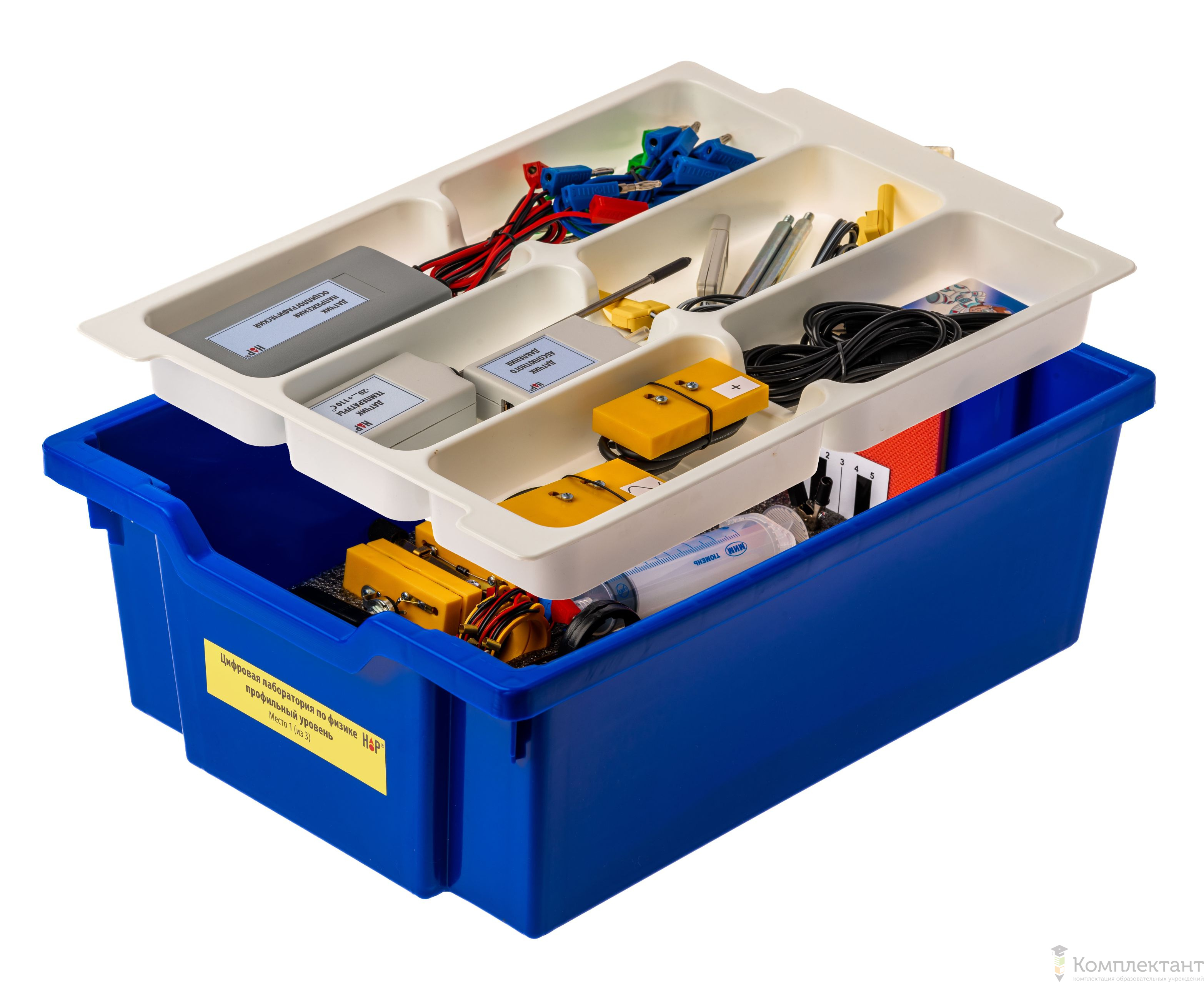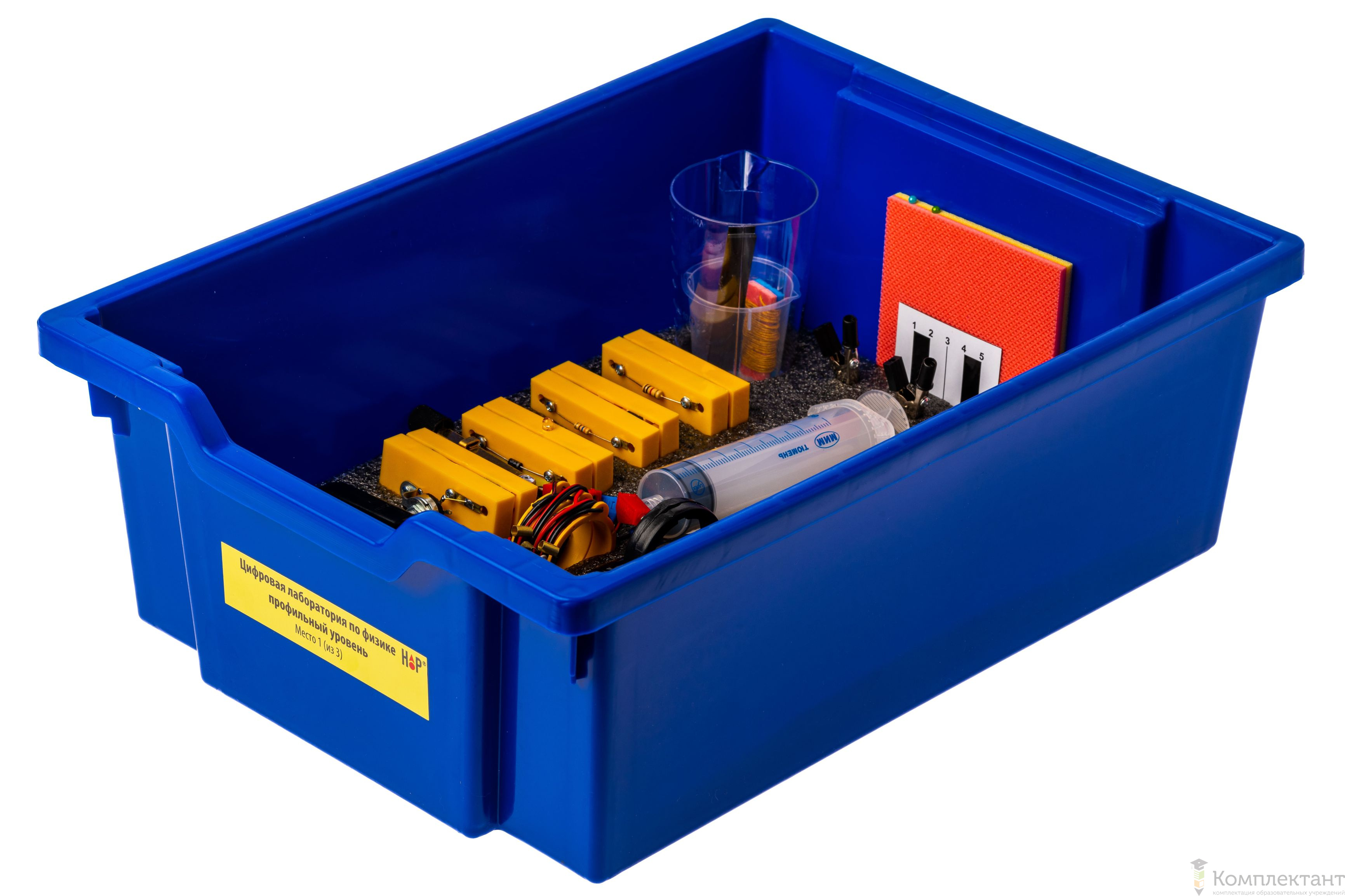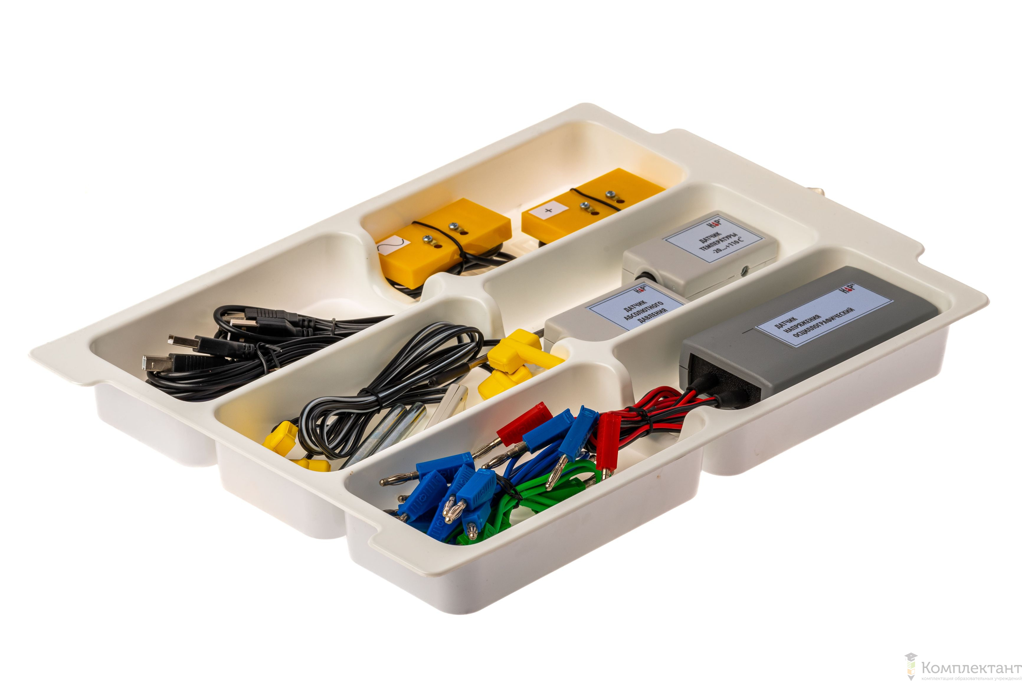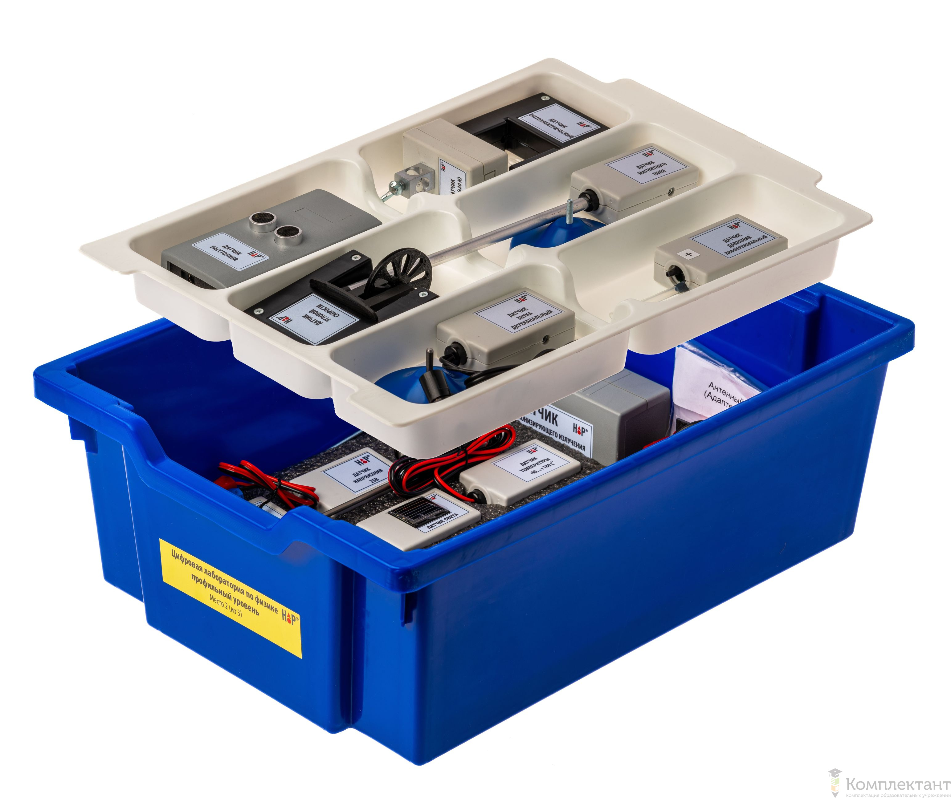 Все оборудование цифровой лаборатории (кроме скамьи лабораторной) укомплектовано в системы хранения, которые закрываются прозрачной пластиковой крышкой на защелках для обеспечения наблюдения за содержимым. Комплект оборудования и датчики в системе хранения располагаются на ложементах в индивидуальных ячейках.